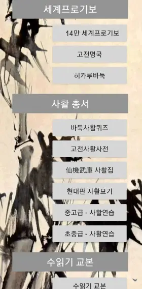 ![]() 앱내용은 바둑강좌에 다 있어요!바둑월드 들어와 바둑강좌 보세요!앱없이도 앱내용 다 봅니다~~▒ 바둑앱 리스트앱00. 바둑전술총서→다운로드 앱01. 앱02. 프로들의 대마사냥 앱03. 고급수읽기교본-1 앱04. 고급수읽기교본-2 앱05. 바둑병법36계 앱06. 바둑사활퀴즈 앱07. 고전사활사전 앱08. 선기무고 사활집 앱09. 현대판 사활묘기 앱10. 중고급 사활연습 앱11. 초중급 사활연습 앱12. 고전명국 앱13. 왕초보강좌 앱14. 새내기 머리얹다 앱15. 히카루의 바둑 앱16. 알파고셀프 50선 앱17. 알파고제로 80선 앱18. 알파고-프로기사 앱19. 골락시-프로기사 앱20. AI 바둑리그 ☆*: .。. 앱01~20은 앱설치가 필요없으나 바둑전술총서는 앱을 설치해야 합니다. 핸폰 Play스토어 눌러 설치하세요!언제 어디서나 즐겁습니다^^ ![]() |