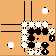 After black again cannot play 'a' so the corner is dead.
